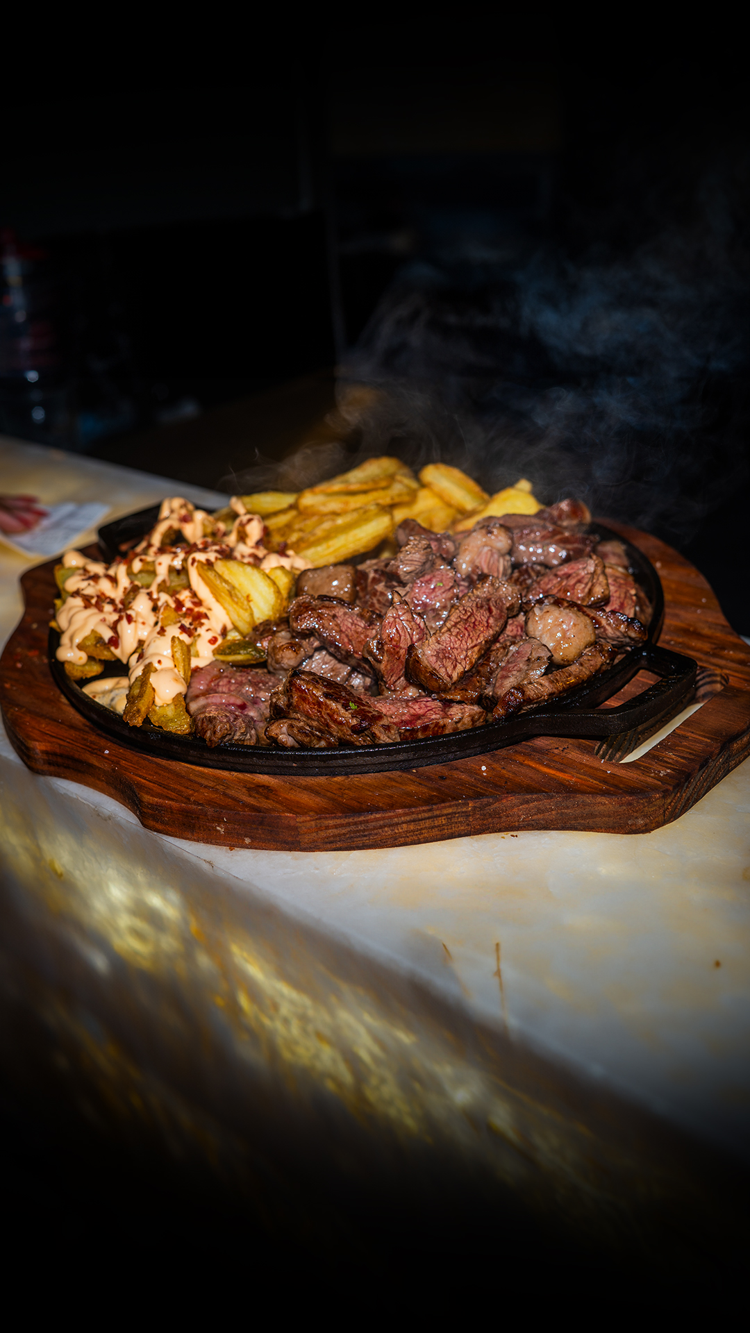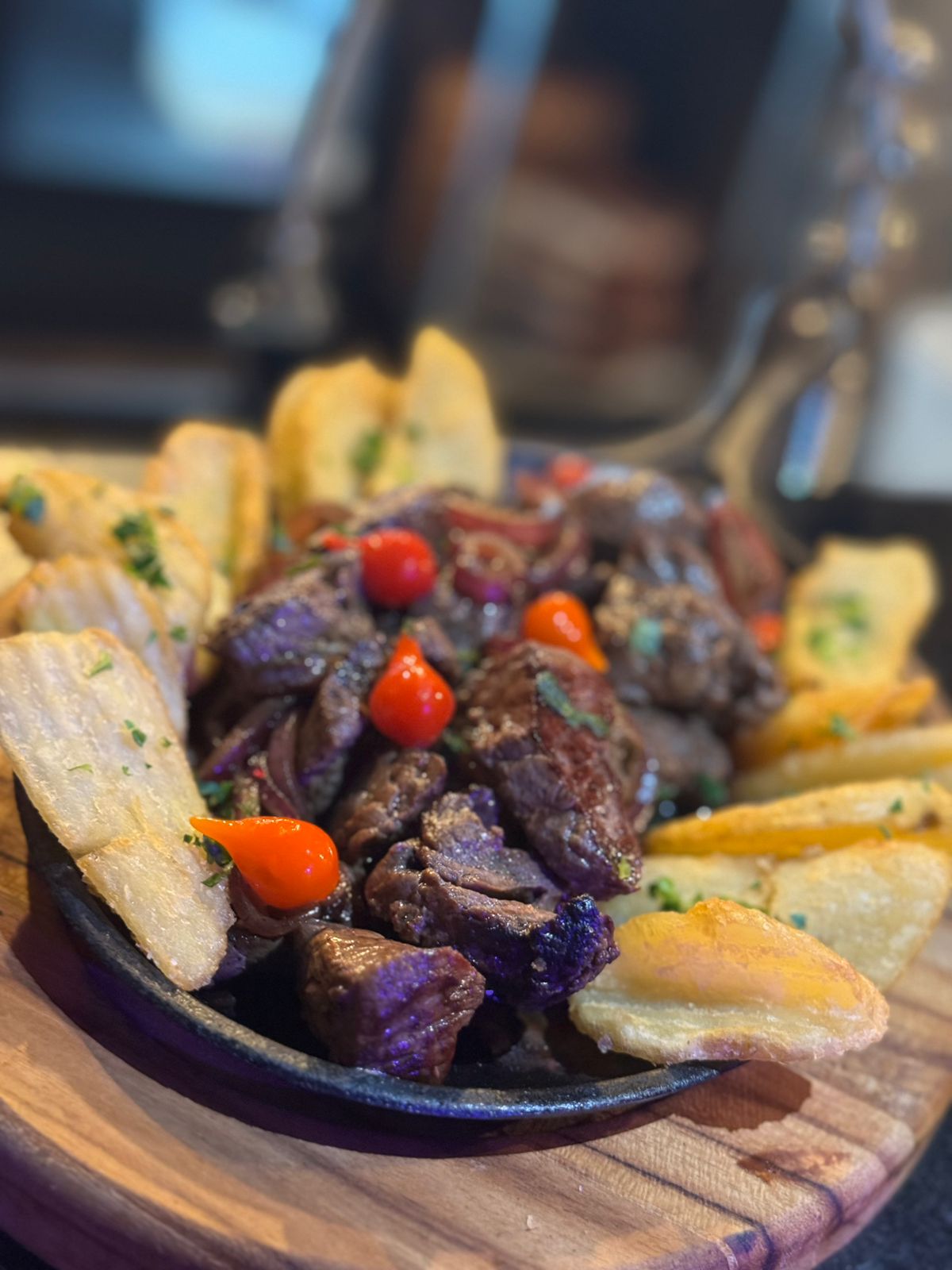 300g de Mignon acebolado, acompanhado de batata rústica