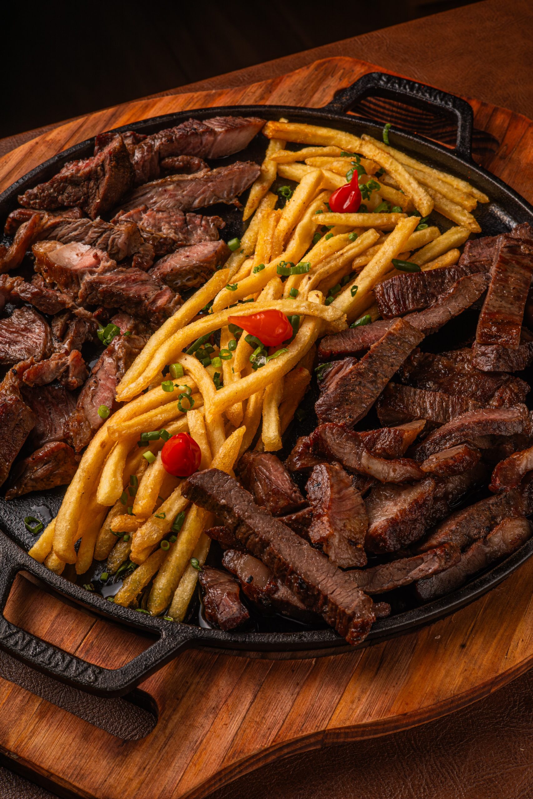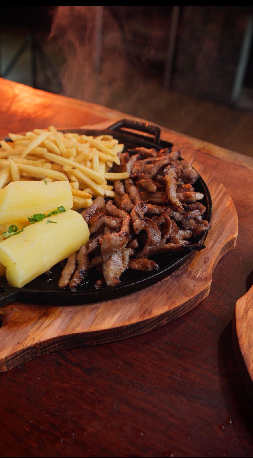 500 g de cupim na mostarda, 500 g de picanha, acompanhada de batata frita crocante.