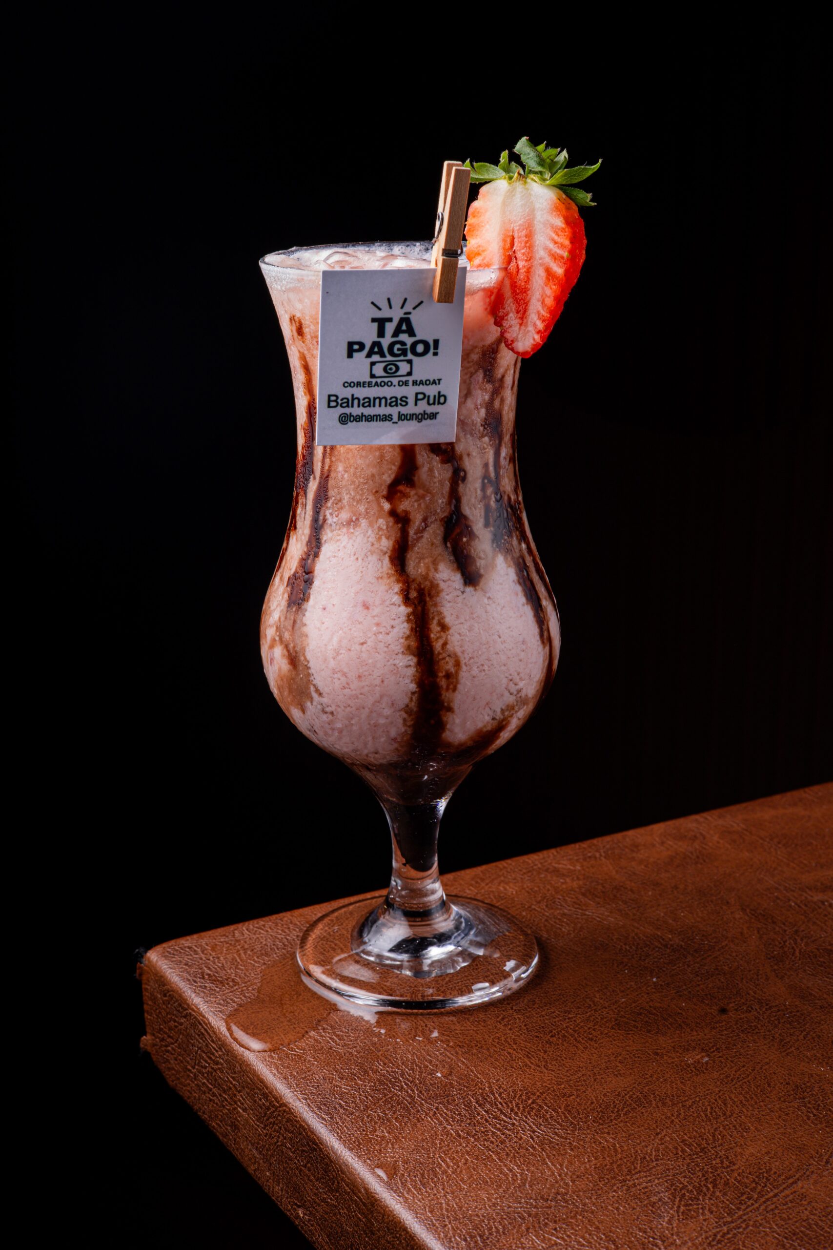 Brownie de chocolate, com creme de baunilha, calda de chocolate e farofinha crocante.